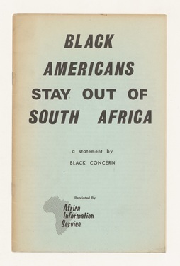 Black Americans stay out of South Africa: a statement by Black Concern, 1972. Leaflet, ink, paper, 14 x 21.6 cm.