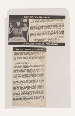 Don't let them brainwash your children with alien propaganda. Article, ink, paper, 13.8 x 7.3 cm.